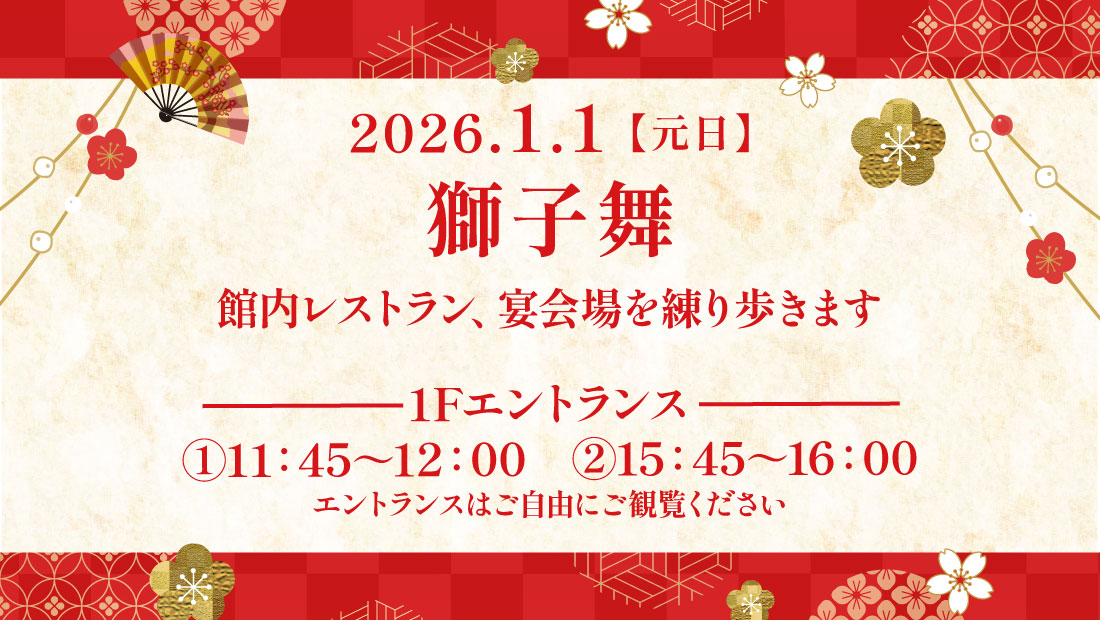 2026年元日も、獅子舞が、各レストラン、宴会場を練り歩きます。