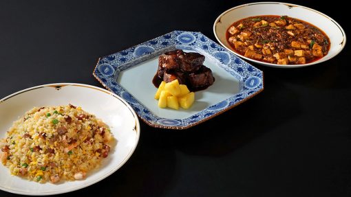 冷菜盛り合わせ/広東名物 “焼味” 盛り合わせ/ふかひれの姿煮込み/大海老の香港漁師風スパイス炒め/霧島ポークの黒酢酢豚/彩湖自慢の麻婆豆腐/王道 五目炒飯 /デザート