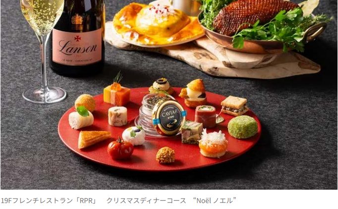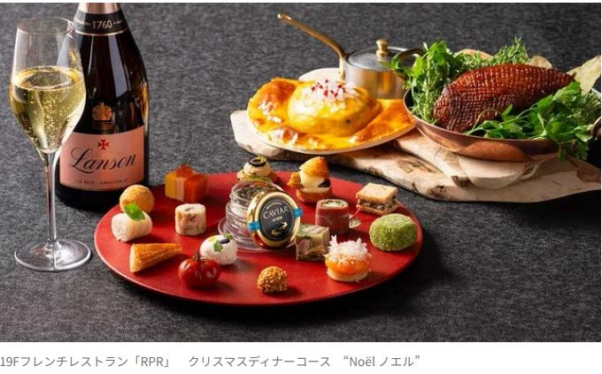 クリスマス期間限定のディナーメニューの予約受付を開始いたしました。19Fフレンチレストラン「RPR」による黒毛和牛や京鴨をメインに厳選食材を堪能できる「Noël ノエル」や1Fテラスダイニング「ミケーラ」によるローストチキンや蟹の氷台盛り、季節のフルーツを使ったデザートなどが楽しめる「クリスマスディナービュッフェ」など、クリスマスを彩る料理をご用意。ご家族や大切な人と笑顔溢れるひとときをお過ごしください。