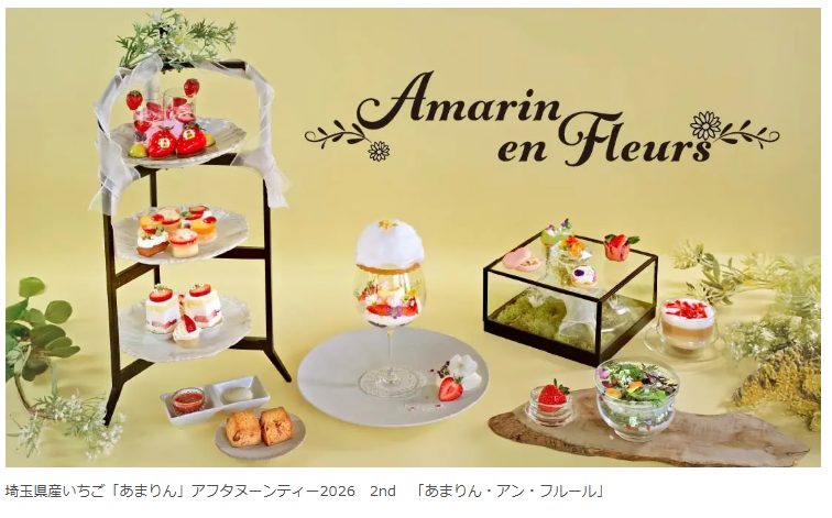 トップラウンジでは2026年3月19日(木)より、埼玉県が誇るブランドいちご「あまりん」を贅沢に使用したアフタヌーンティーの第二弾として「あまりん・アン・フルール」を開催いたします。第二弾は通常のアフタヌーンティーに加え、平日限定でナイトアフタヌーンティーも開催。より多くの皆様にお楽しみいただけます。