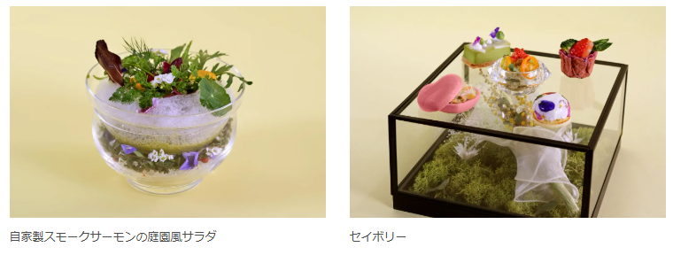 あまりんの深い甘みと花の余韻が重なり合うスイーツと、花々に囲まれた庭園のようなセイボリー、