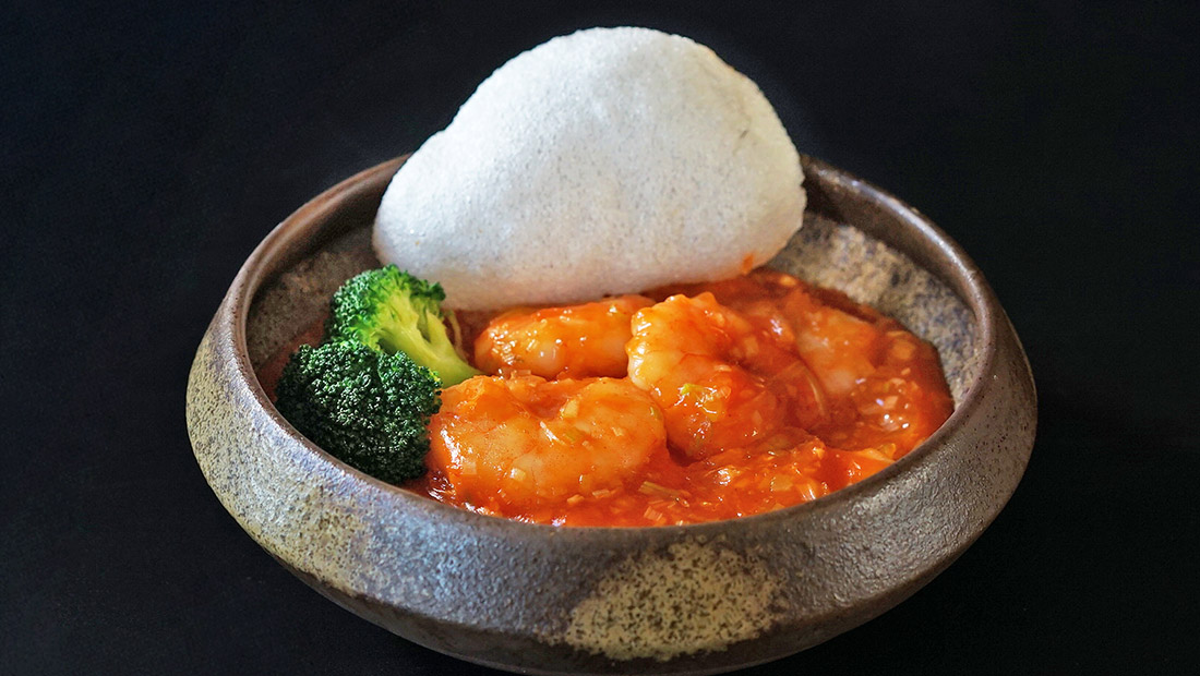 ・海老のチリソース(スープ、ご飯 または お粥 付き)