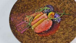 ・マグレ鴨胸肉のロースト 紫キャベツのファルシ そのジュの赤ワインソース