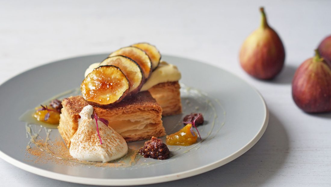 シナモン香るパイ生地にカスタードクリーム、無花果のコンフィチュール、