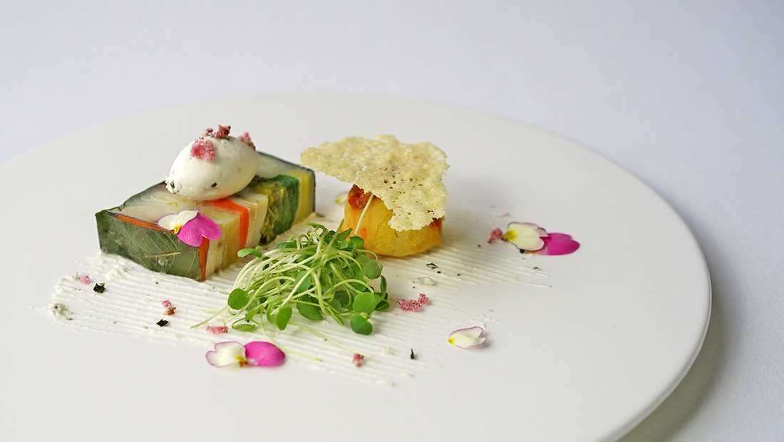 ・新潟県産越後もち豚のグリエとソシソン シャルキュトリー風