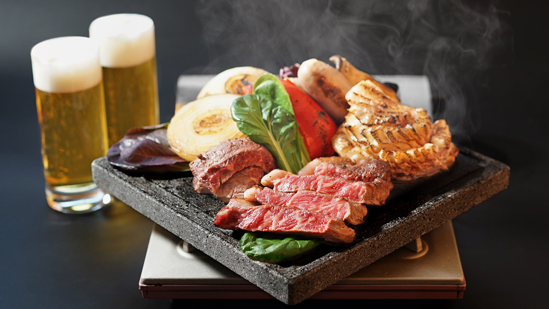 香ばしい独特の焼き上がりをお楽しみいただける溶岩グリルセット。