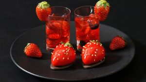 苺の香り漂う豆乳クリームに赤紫蘇で風味豊かに仕上げた苺のマリアージュ。