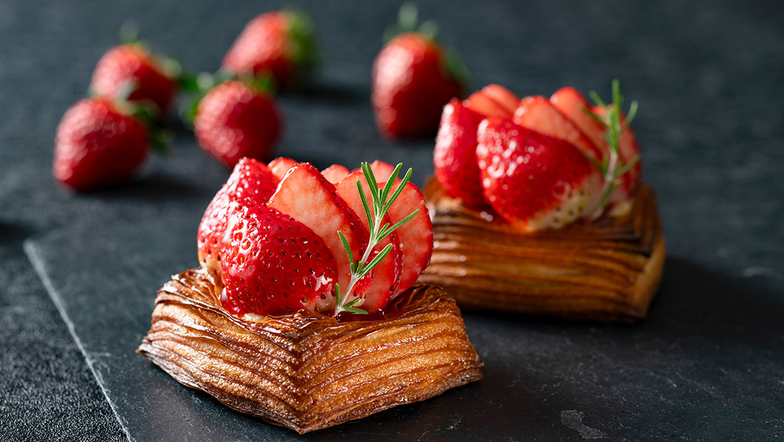 ザクザク食感のデニッシュにあまりんと自家製カスタードクリーム 、いちごのコンフィチュールを合わせました。