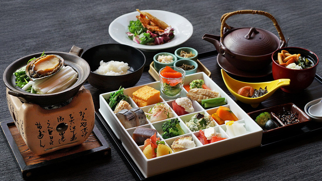 蒸したての鮑と、いろどり豊かな十六の小鉢、