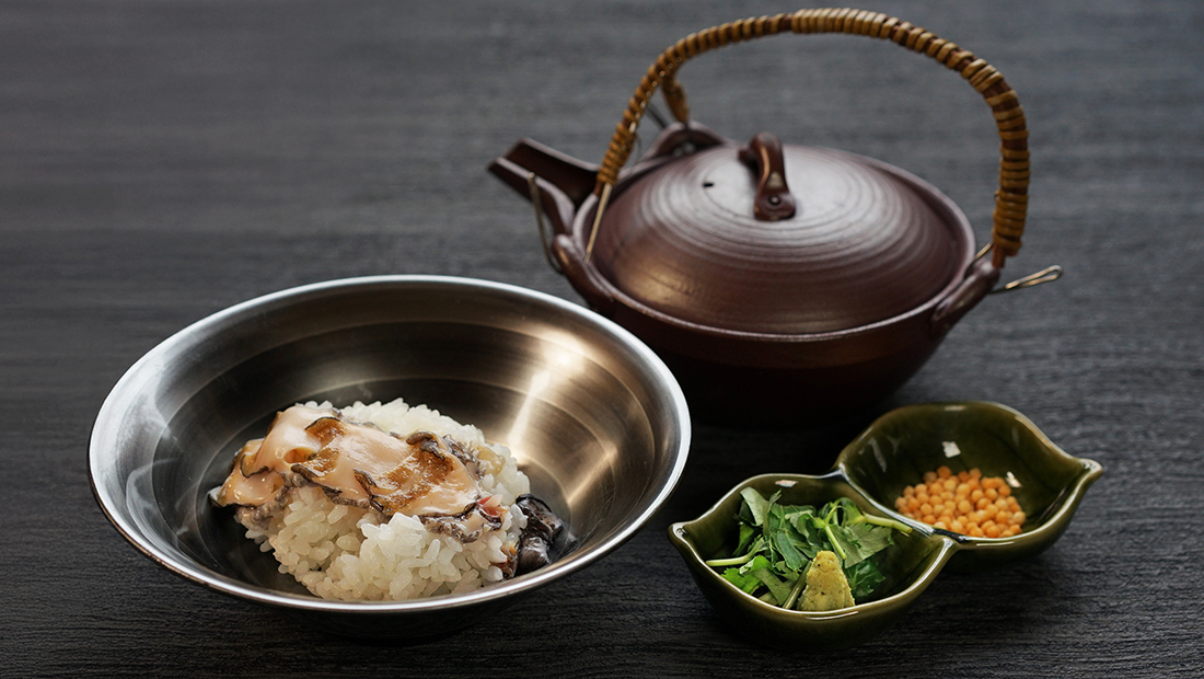 【食 事】 活〆鮑お茶漬け 山葵 生海苔