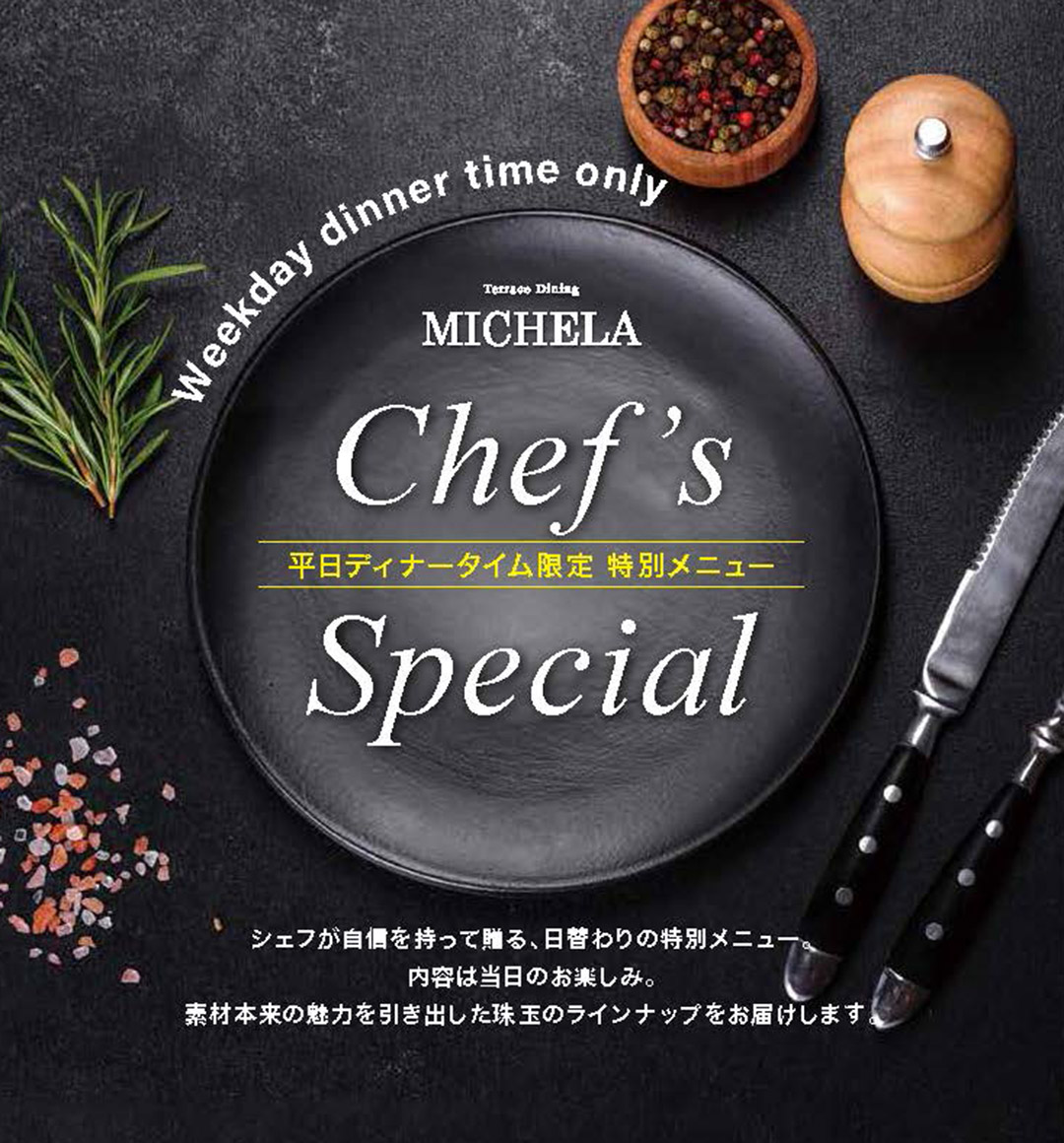 平日ディナー限定のシェフズスペシャルもお見逃しなく!